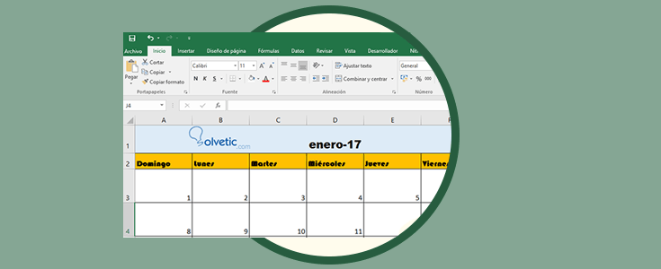 2. Cómo crear un calendario en Microsoft Excel 2016