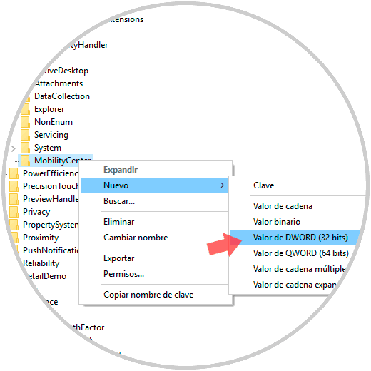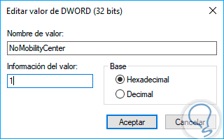 Este nuevo valor será llamado “NoMobilityCenter”: