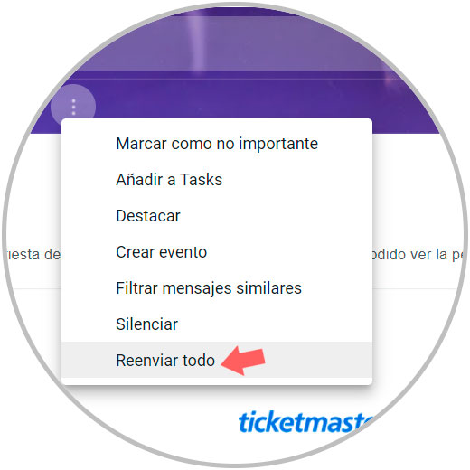 Se desplegará una ventana emergente. Una vez aquí deberás pulsar en la última opción de la ventana llamada “Reenviar todo”.