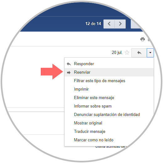 Puede darse el caso de que a la hora de reenviar un correo, no queramos sólo enviar un correo en concreto, sino que queramos enviar dentro del contexto que acompaña este correo, es decir, la conversación completa en la que está un correo electrónico.