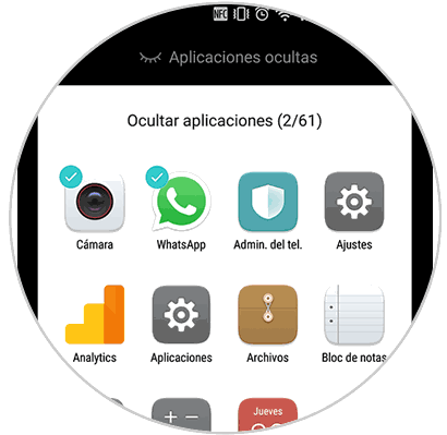 Veremos aquellas aplicaciones que se encuentran ocultas en el terminal. Tenemos que pulsar sobre los iconos que se encuentran marcados con un Check para que de nuevo sean añadidos a la pantalla de nuestro teléfono.