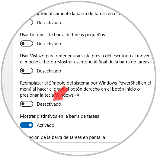 Puedes cambiar que sea Windows o PowerShell el que aparezca por defecto para abrir la ventana de comandos tienes que ir a la siguiente ruta y activar o desactivar la opción que puedes ver en la imagen.