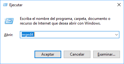 Para acceder al editor de registros en Windows 10, usaremos la combinación de teclas siguientes y en la ventana desplegada ejecutamos el comando regedit: