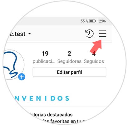Abre la aplicación de Instagram y entra en tu perfil. Entra en el menú de configuración pulsando el icono que se encuentra en la esquina superior derecha de la pantalla representado por tres rayitas.