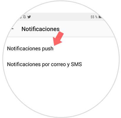 Lo siguiente que debes hacer es pulsar en el menú emergente, en el apartado de "Notificaciones"
