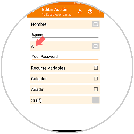 Pulsamos en la línea Establecer variable y en la próxima ventana debemos ingresar la contraseña de Windows 10 en el campo A: