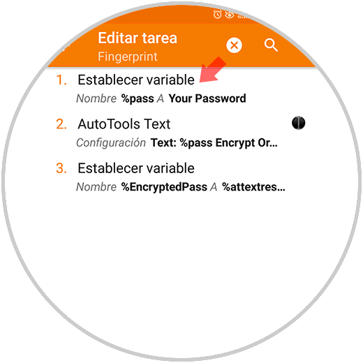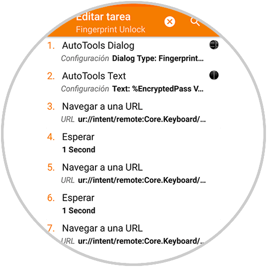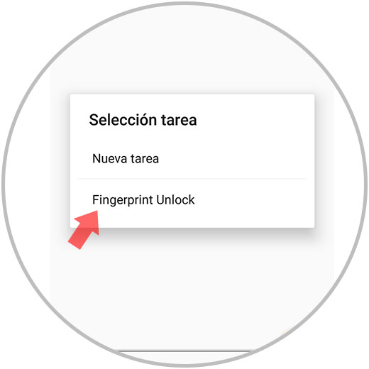 Alli pulsamos en Tarea y en la próxima ventana seleccionamos la línea Fingerprint Unlock: