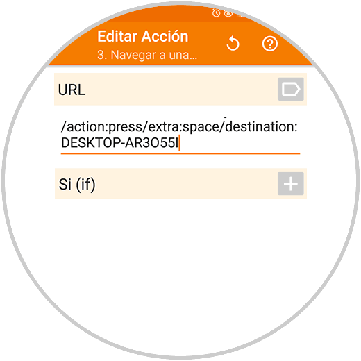 Allí debemos editar las líneas llamadas Navegar a una URL, las cuales son tres, y en ellas ingresar el nombre del equipo donde está instalado Windows 10: