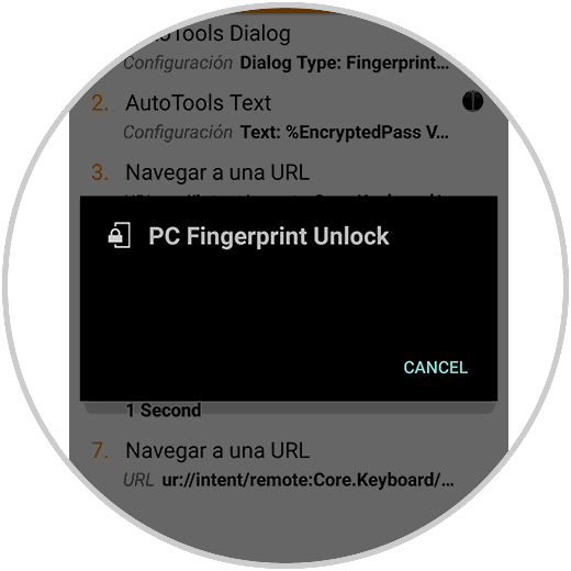 Por último, cuando Windows 10 este bloqueado, basta con pulsar sobre la tarea Fingerprint Unlock que hemos asignado en el Widget y veremos lo siguiente. Alli usaremos nuestra huella en Android y Windows 10 será desbloqueado.