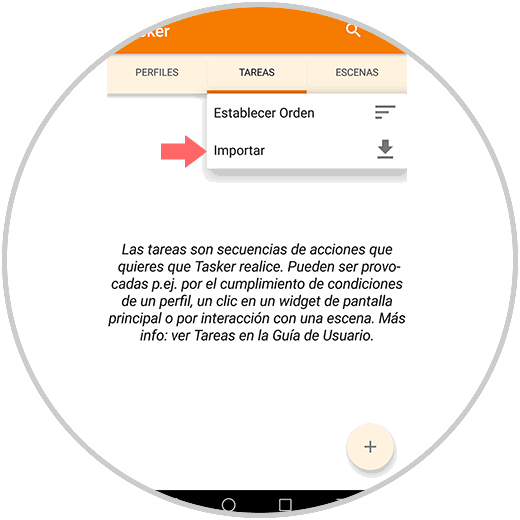 A continuación, abrimos la aplicación Tasker y pulsamos por tres segundos sobre la pestaña Tareas y observaremos las siguientes opciones: