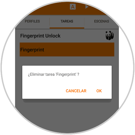 Podemos regresar al menú anterior, seleccionar Fingerprint y pulsar obre el icono de papelera para su eliminación: