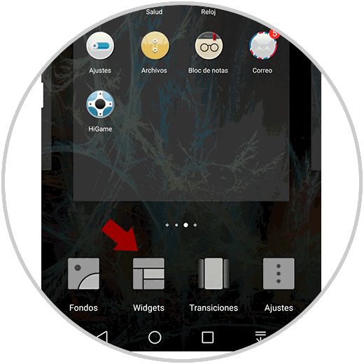 Ahora pulsamos sobre la pantalla de Android y seleccionamos la opción Widgets en la parte inferior: