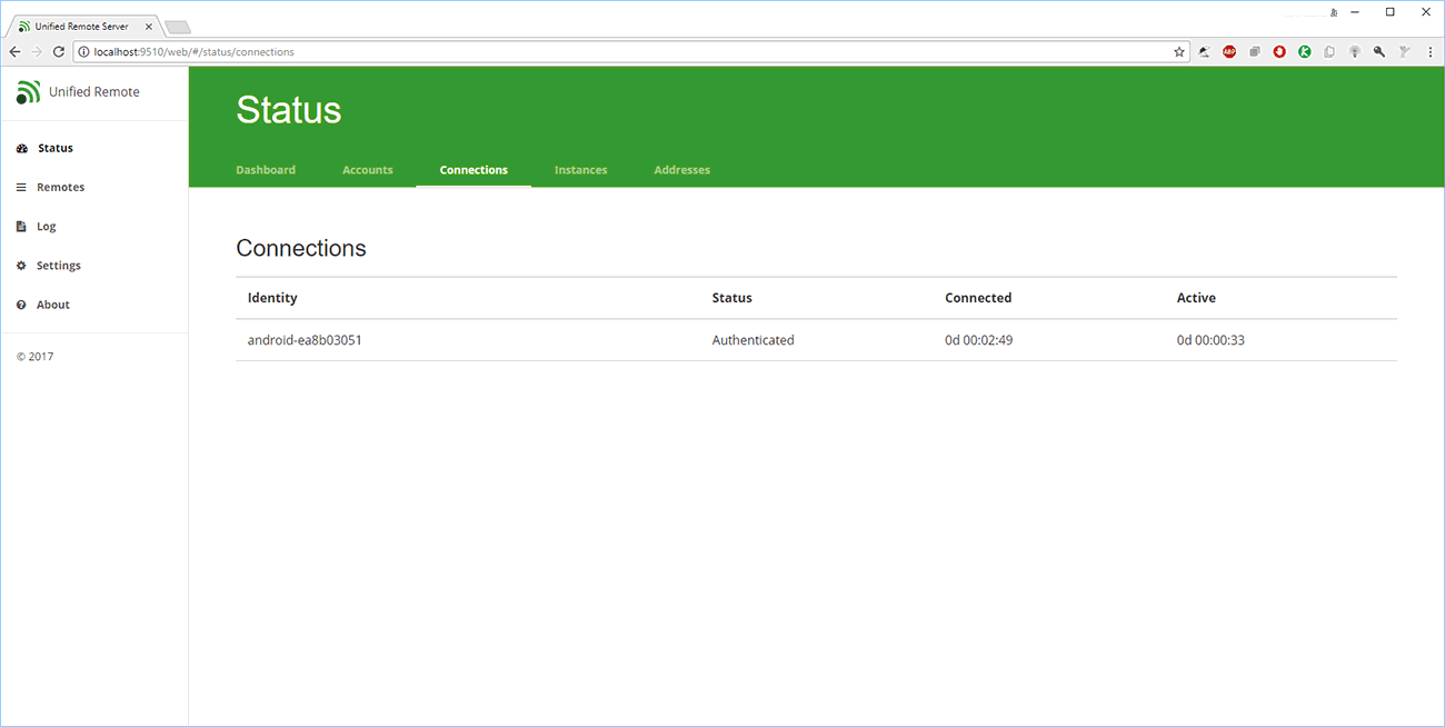 Del mismo modo, si accedemos a la aplicación de Unified Remote en Windows 10 podremos ver que conexión esta en ese momento haciendo uso del equipo: