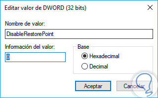 Daremos doble clic sobre dicho valor y debemos asegurarnos que el valor en el campo Información del valor sea cero 0. Pulsamos en Aceptar. Podremos salir del editor de registros.