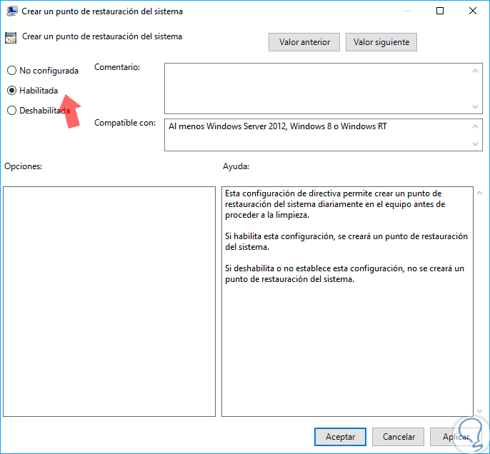 Damos doble clic sobre ella y activamos la casilla “Habilitada”. Pulsamos en Aplicar y Aceptar para guardar los cambios.
