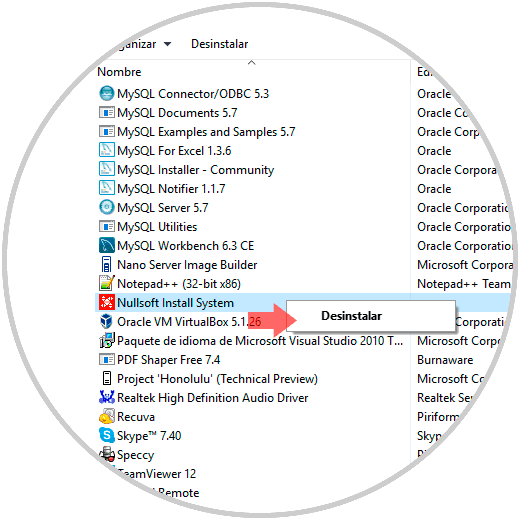 Allí debemos analizar detalladamente cada programa instalado y cuando detectemos alguno que es sospechoso procedemos a desinstalarlo usando alguna de las siguientes opciones: