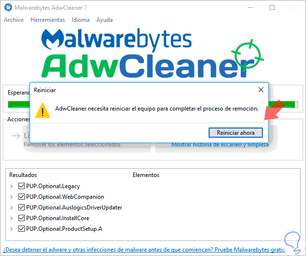 Allí podremos ver los elementos que han sido afectados, podemos pulsar en el botón “Limpiar” para iniciar la respectiva acción: