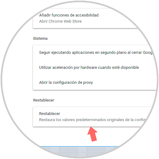 En la nueva ventana iremos a la parte final y seleccionaremos la sección “Restablecer”:
