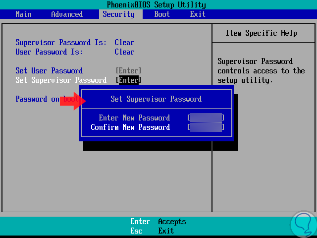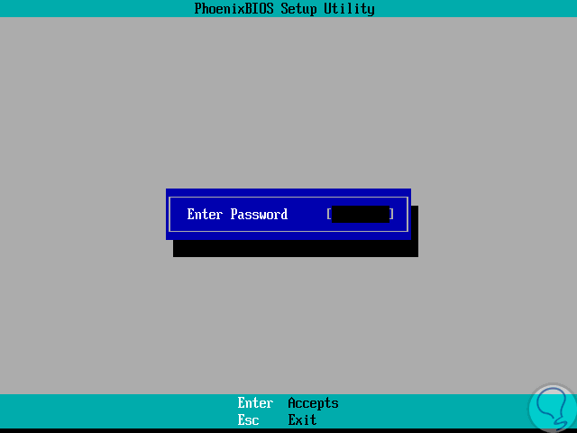Una vez los cambios sean guardados, con la tecla F10 en el BIOS, al intentar acceder al BIOS y efectuar algún cambio será necesario ingresar la contraseña estipulada: