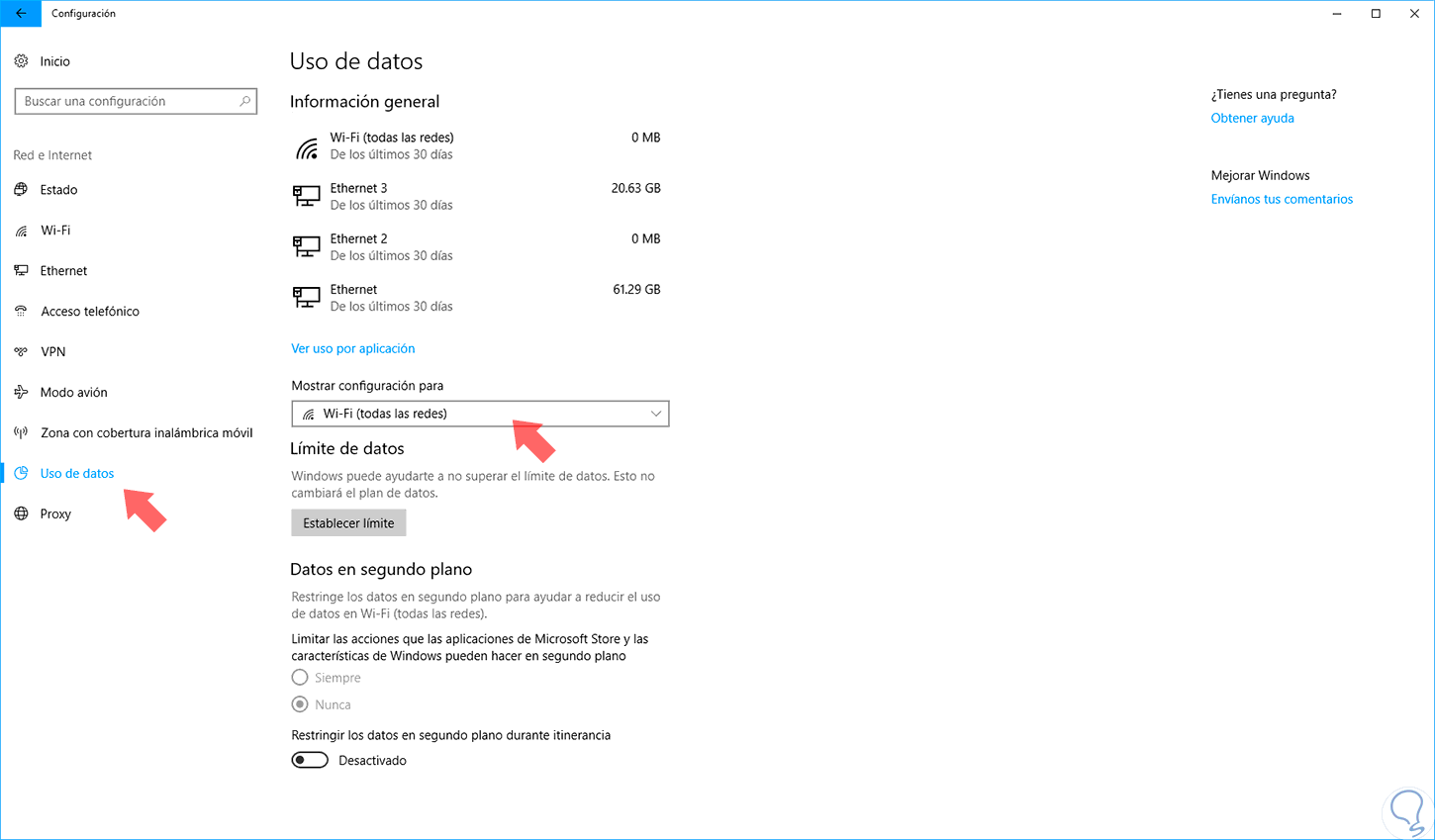 Hoy veremos cómo acceder a este uso de datos y allí comprobar en tiempo real el uso de datos que usamos en Windows 10.