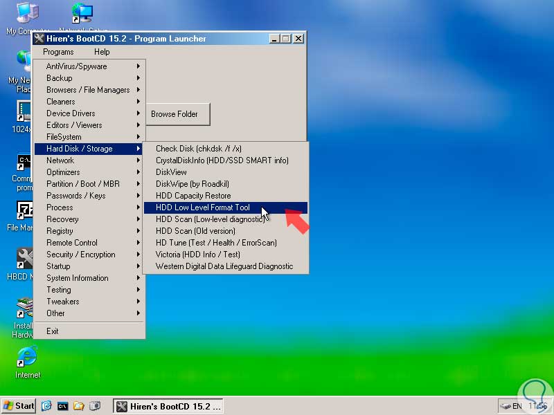 Allí pulsamos en el menú “Programs” y vamos a la ruta “Hard Disk / Storage / HDD Low Level Format Tool”: