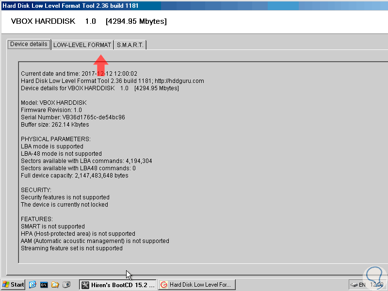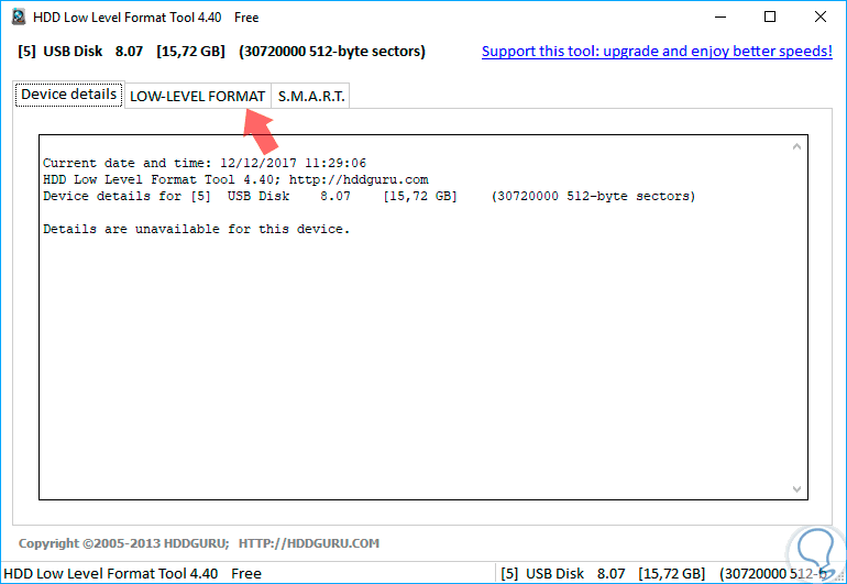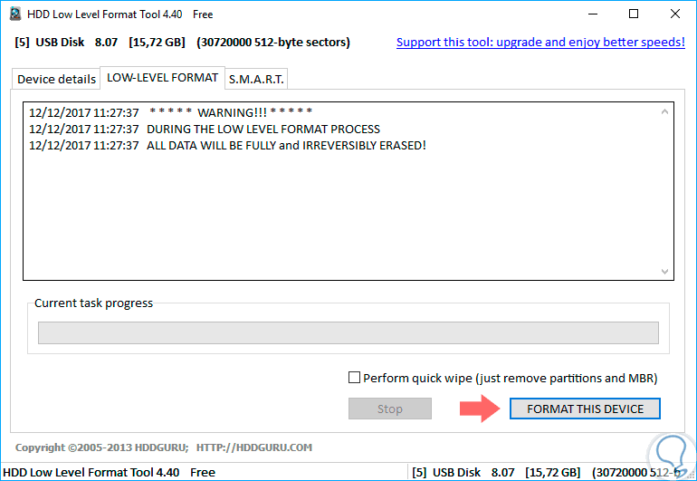 Vamos a la segunda pestaña, Low-level format y veremos lo siguiente: