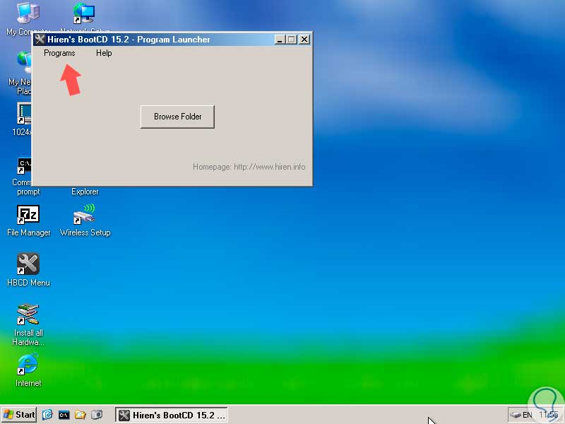 Allí daremos doble clic sobre la aplicación “HBCD Menu” y será desplegado lo siguiente: