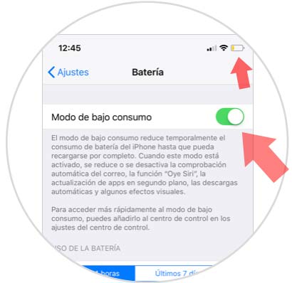 Como podéis observar una vez activado este modo, veremos que el color de la batería se cambia el color en amarillo. Así que si vemos que sale en amarillo es que tenemos activado el "Modo de bajo consumo".