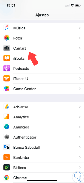 Seleccionamos la opción de “Cámara” para ver su configuración.
