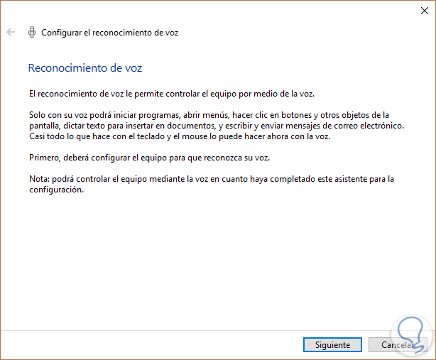 Una vez configurado de este modo, pulsamos en Siguiente y será necesario que repitamos el texto desplegado para que Windows reconozca nuestra voz: