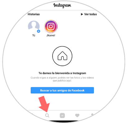 Para esto, abrimos la aplicación de Instagram y pulsamos en el icono de búsqueda, forma de lupa, en la parte inferior de la aplicación: