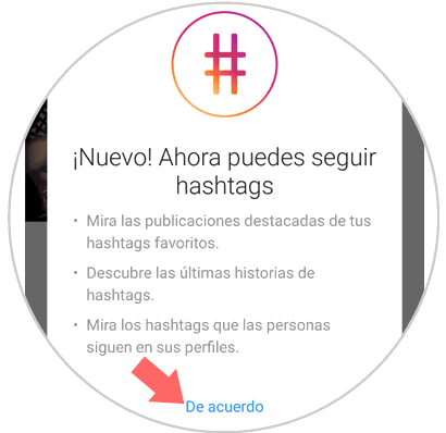 Pulsamos sobre el hashtag deseado y veremos el siguiente mensaje. Pulsamos en "De acuerdo"