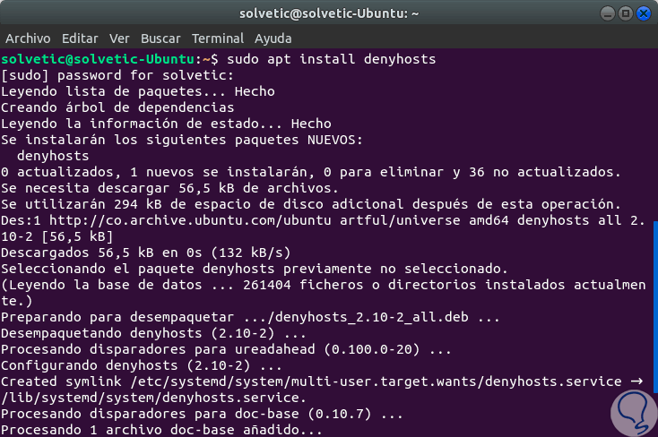 Para instalar DenyHosts en Ubuntu 17.10 ejecutaremos la siguiente línea: