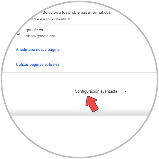 Ahora desplaza la pestaña de "Configuración avanzada".