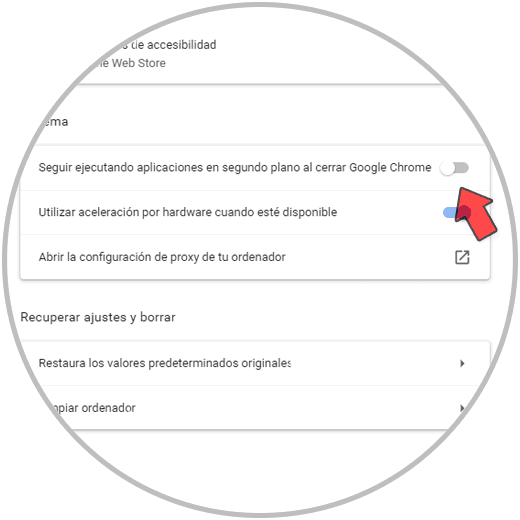 Aquí iremos hasta "Sistema". Dentro de aquí vamos a desactivar la opción de "Seguir ejecutando aplicaciones en segundo plano al cerrar Google Chrome". Esto evitará que siga consumiendo CPU Chrome aunque cerremos el navegador.