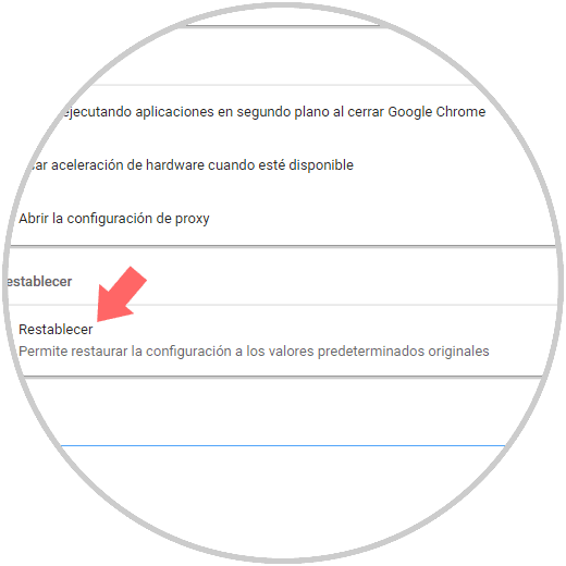 En la configuración avanzada, en la parte inferior, daremos clic sobre la sección Restablecer: