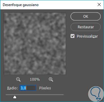 Ahora ve a “Filtro – desenfocar – Desenfoque gaussiano”. Elegimos un valor entre 2 y 4.5 hasta que veamos un resultado parecido al de la imagen.