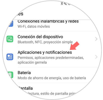 Se desplegarán varias opciones dentro de los ajustes. Pulsa en la opción “Aplicaciones y notificaciones”