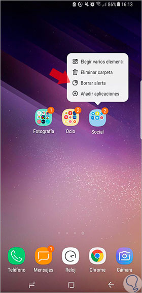 Mantén pulsado sobre la aplicación que elijas y selecciona la opción de “Borrar alerta”.