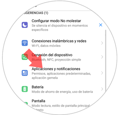 Dentro del menú desliza hasta la opción “Aplicaciones y notificaciones” y pulsa aquí.