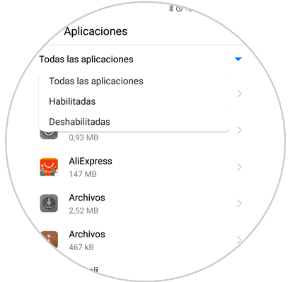 - Deshabilitadas: Al pulsar sobre ella te mostrará el listado de Apps ocultas