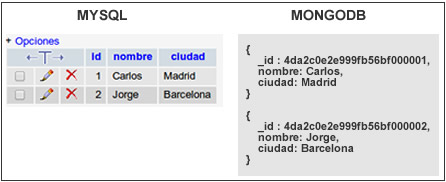 Mientras que almacena los datos de fila en el conjunto de columnas, un documento tiene una estructura JSON (conocido como BSON en MongoDB). Por último, la forma en que tenemos filas en una fila de SQL, que tiene campos en MongoDB.