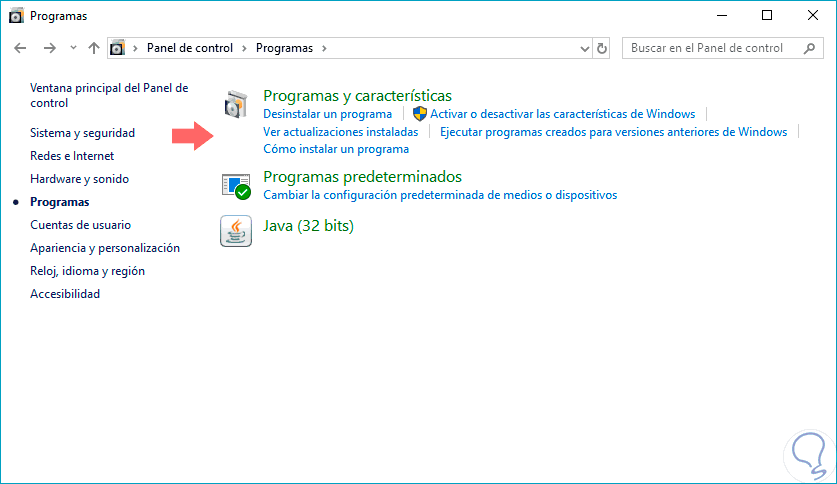 - Programas y características