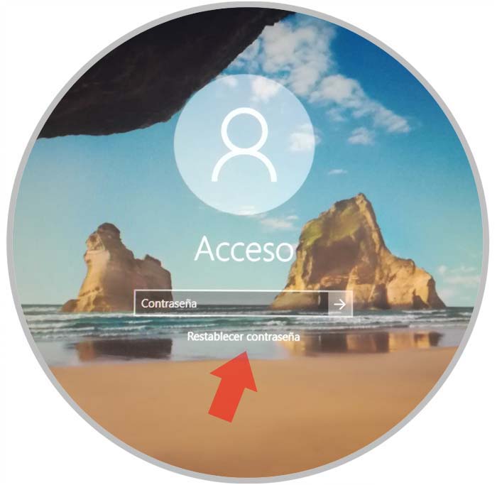 Para implementar este método de restauración, al momento de acceder a la pantalla de inicio de sesión e ingresar la contraseña de forma errónea, podemos ver la opción Restablecer contraseña en la parte inferior de la cuenta: