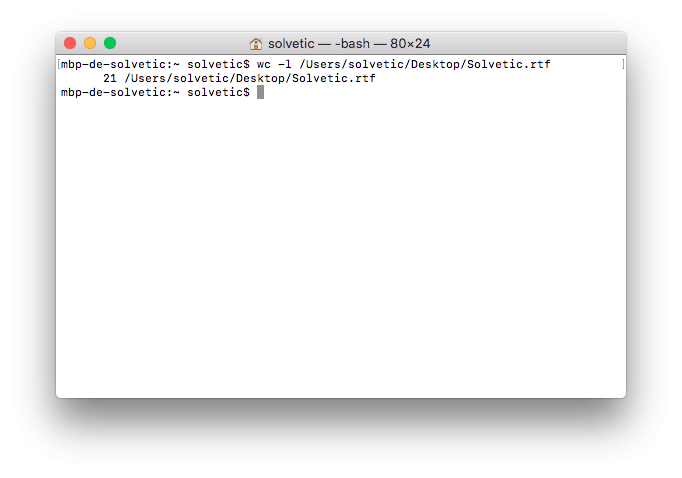 Ahora veremos cómo contar líneas en macOS High Sierra usando este comando.