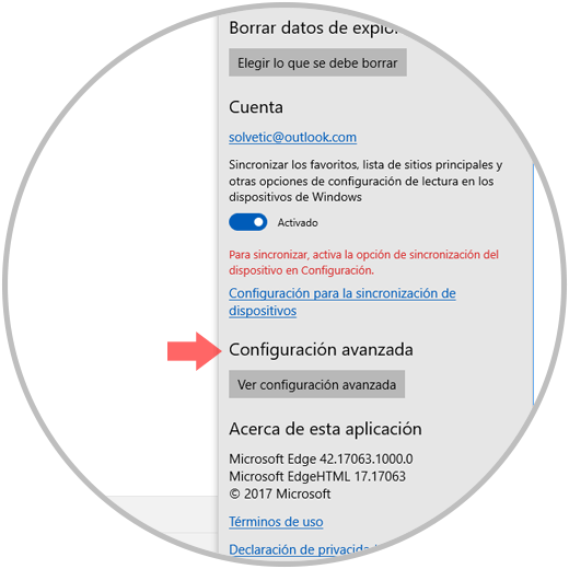En las opciones desplegadas pulsamos en el botón Ver configuración avanzada: