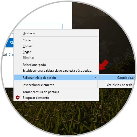 Cuando administramos varios inicios de sesión en Mozilla Firefox, por ejemplo, cuentas de correo, podemos dar clic derecho en el campo del nombre de usuario y allí seleccionar la opción Rellenar inicio de sesión (En otros casos será Rellenar registros) y serán desplegadas todas las cuentas almacenadas: