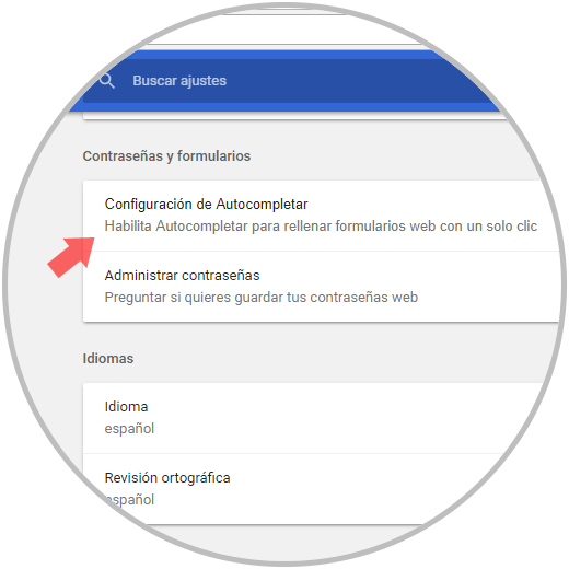 En la nueva ventana desplegada ubicamos la sección Contraseñas y formularios: