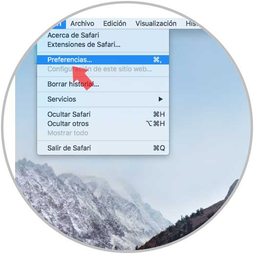 El proceso en Safari es sencillo, para ello vamos al menú Safari y pulsamos en Preferencias: