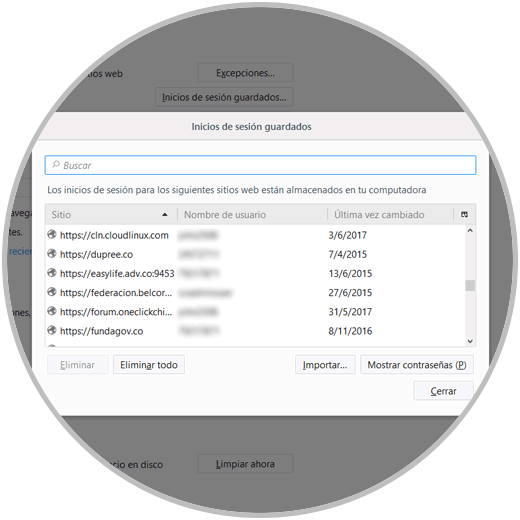 - Ver las contraseñas de cada sitio pulsando en el botón Mostrar contraseñas